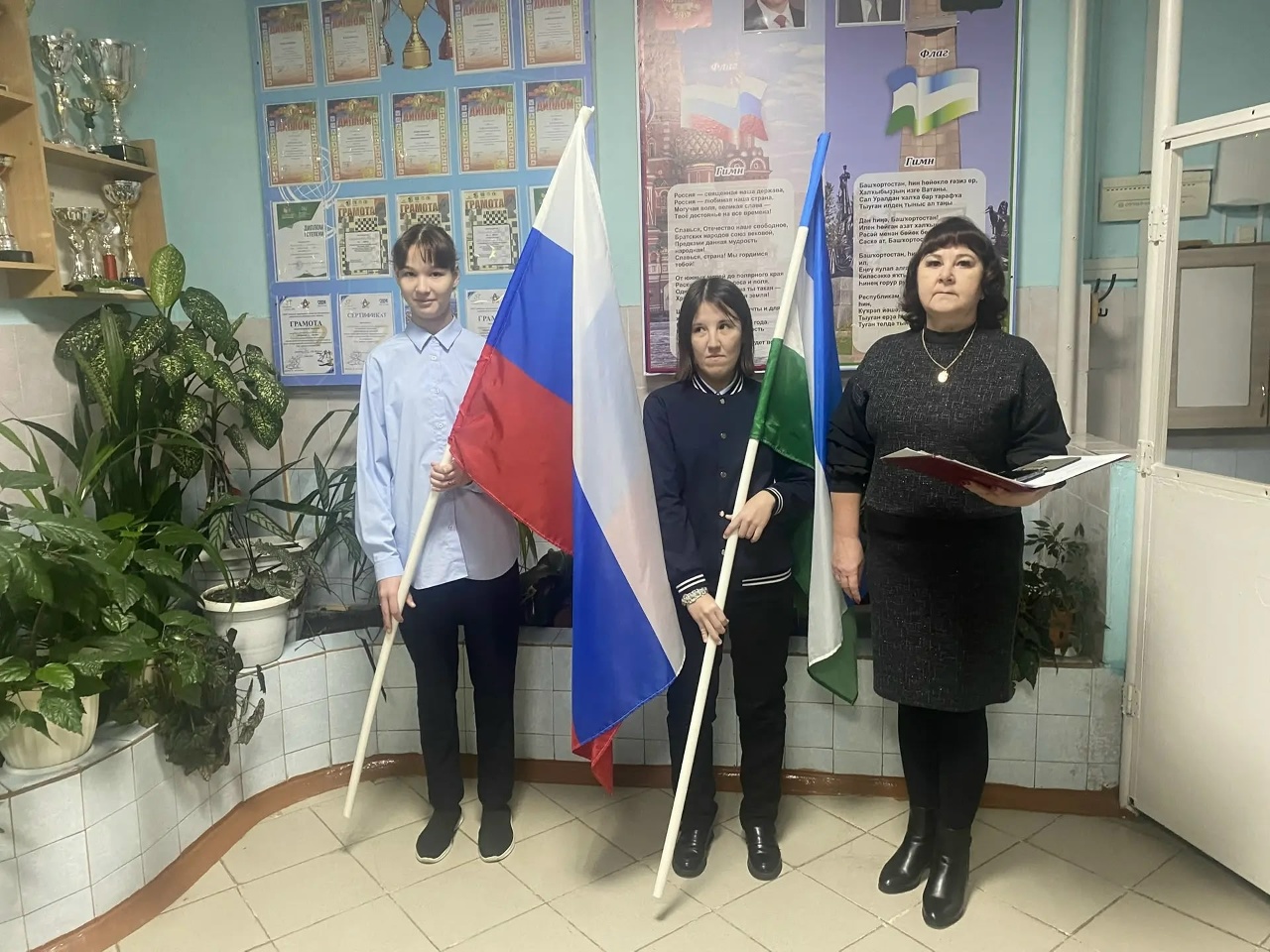 Новая учебная неделя 3 четверти в нашей школе началась с торжественной церемонии поднятия государственных флагов и исполнения гимнов Российской Федерации и Республики Башкортостан. Это важный ритуал, который объединяет нас, воспитывает чувство патриотизма и уважения к символам нашей страны и региона.