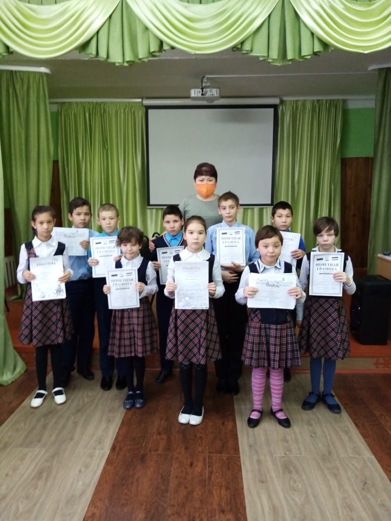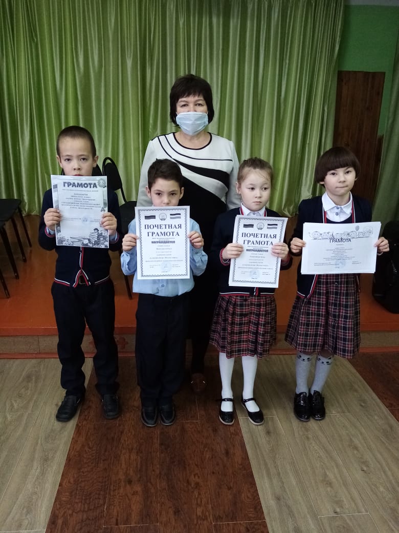 1-ое место- Биккулова Алтынай, (3 кл)2 –ое место- Халиуллина Миля (3 кл), Таипов Ильгиз(4 кл), 3-е место - Шагеева Минлегуль.(4 кл)