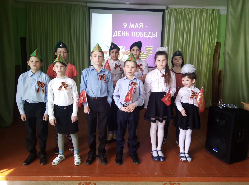 В празднично украшенном зале звучала песня «День победы», воспитанники красиво одеты, с атрибутами военного времени: флажками, пилотками, вместе с воспитателями подпевали известную песню.