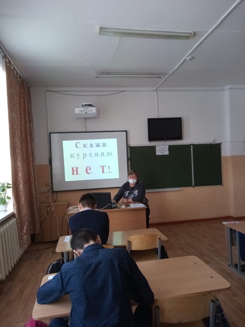 09 февраля воспитателем Пелагеиной И.К. в 8а классе проведено открытое занятие на тему: «Скажи курению НЕТ!» целью являлось, формирование у подростков негативного отношения к употреблению табака и осознанию о вредном воздействии никотина на организм. После организационного момента, проводилось коррекционно развивающее упражнение на определение темы беседы, все воспитанники определяли тему занятия по карточкам: составили буквы по возрастанию цифр, на интерактивной доске проверочную работу проводила Сафина Диана. Воспитатель рассказал о составе сигареты, о негативном влиянии табачного дыма на органы человека, решение задачи о стоимости сигарет, позволило показать финансовую сторону затрат на сигареты, частая смена деятельности во время занятия помогло воспитанником усваивать материал в полном объёме. В качестве закрепления материала дети ответили на вопросы викторины, в завершении прошли поочерёдно онлайн тест «О вреде курения». На протяжении всего занятия воспитатель применял метод убеждения, с целью более эффективного усвоения темы.