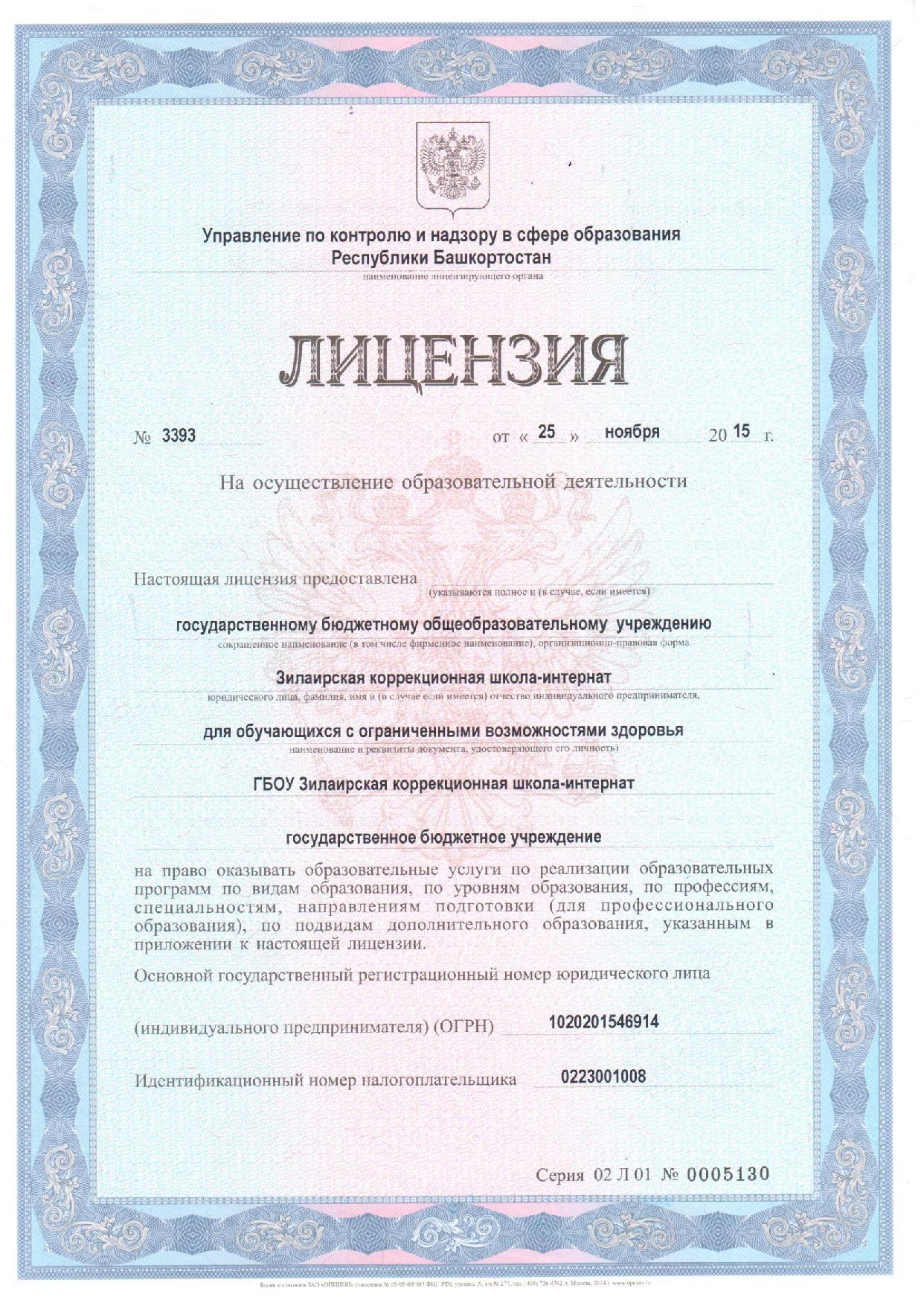 Информация о лицензии на осуществление образовательной деятельности