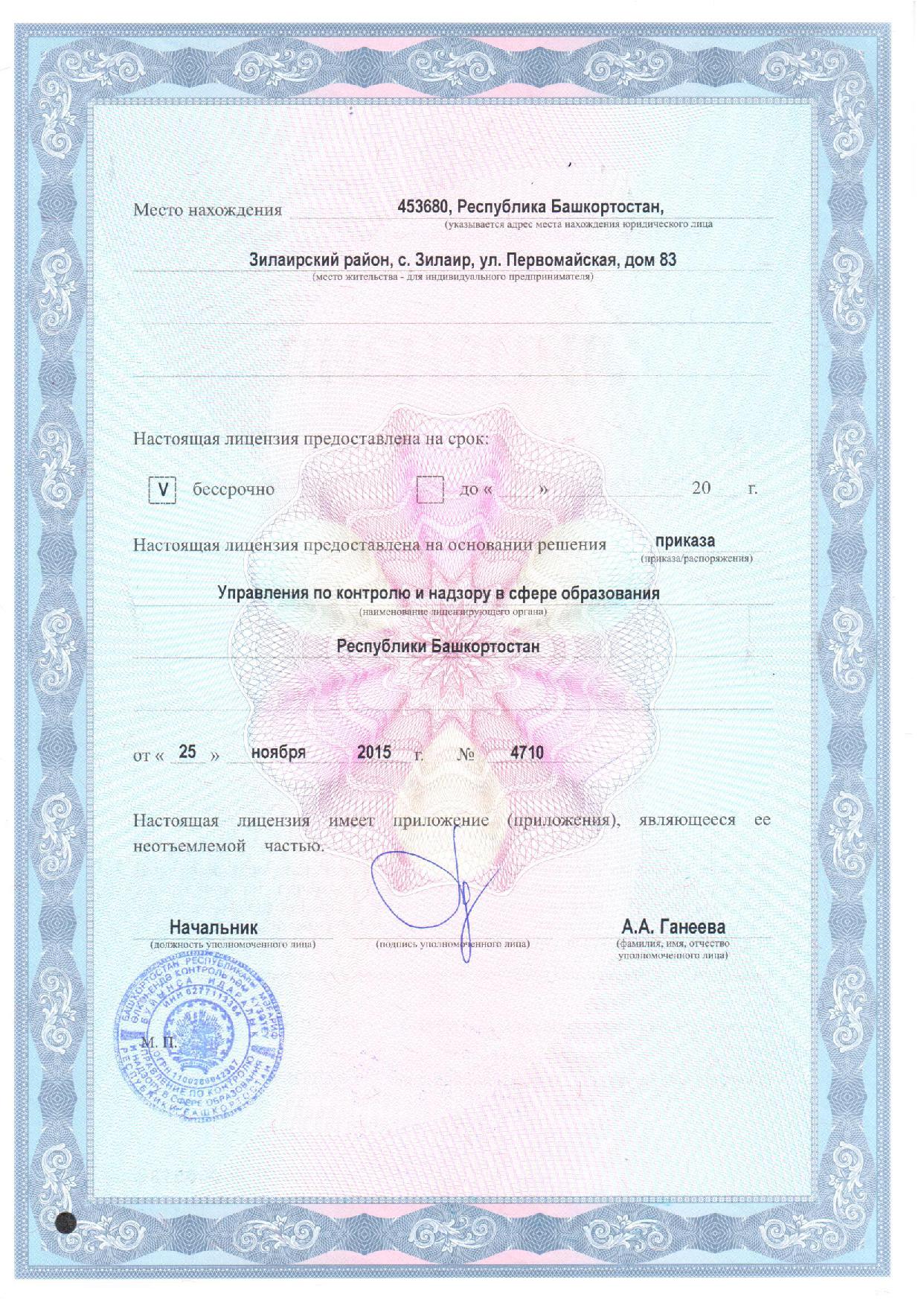 | Адрес места нахождения образовательной организации | 453680, Республика Башкортостан, Зилаирский район, с.Зилаир, ул. Первомайская, дом 83 |